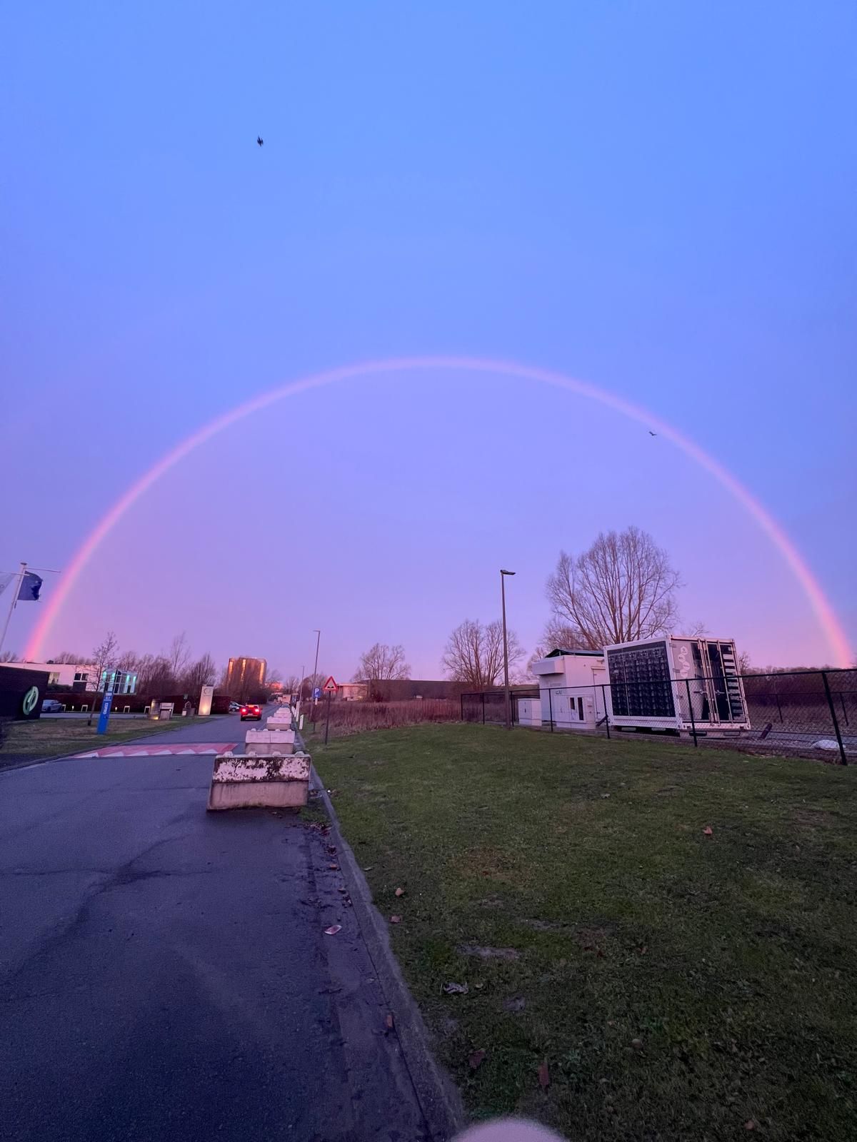 Wie vandaag naar buiten keek op het Researchpark Zellik, werd getrakteerd op een spectaculair natuurverschijnsel: een volledige, dubbele regenboog die onze campus in een magisch licht zette. Terwijl de zon langzaam onderging, herinnerde dit kleurrijke schouwspel ons eraan dat innovatie en natuur hier op de site hand in hand gaan.